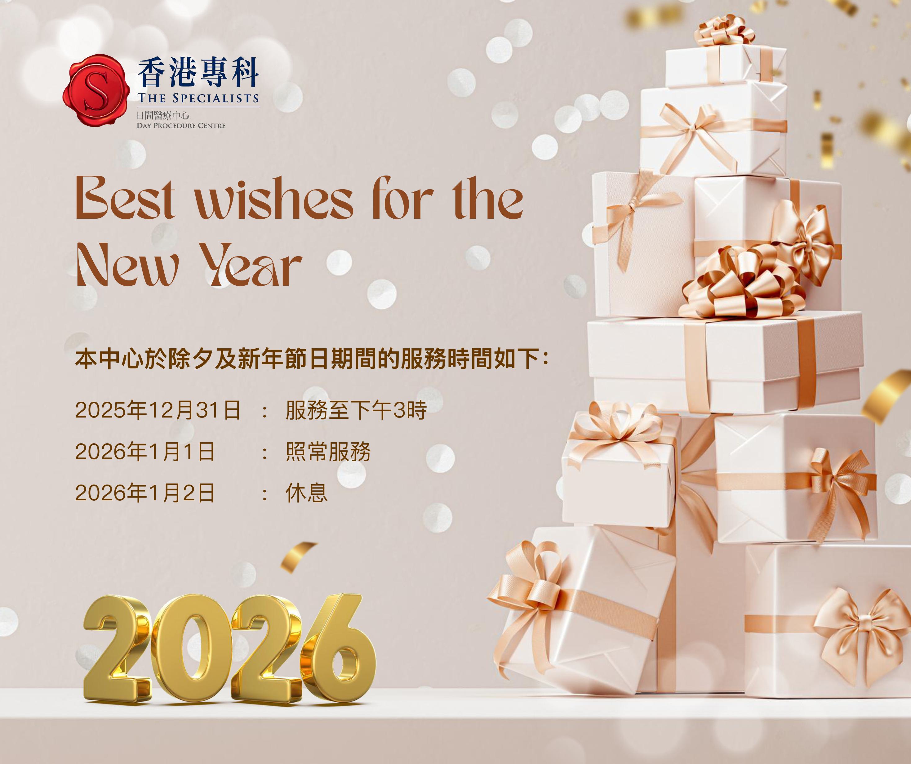Please be advised that our Centre will be closed at 3 pm on 31 December 2025 (Wed). Normal services will resume on 2 January 2026 (Fri).