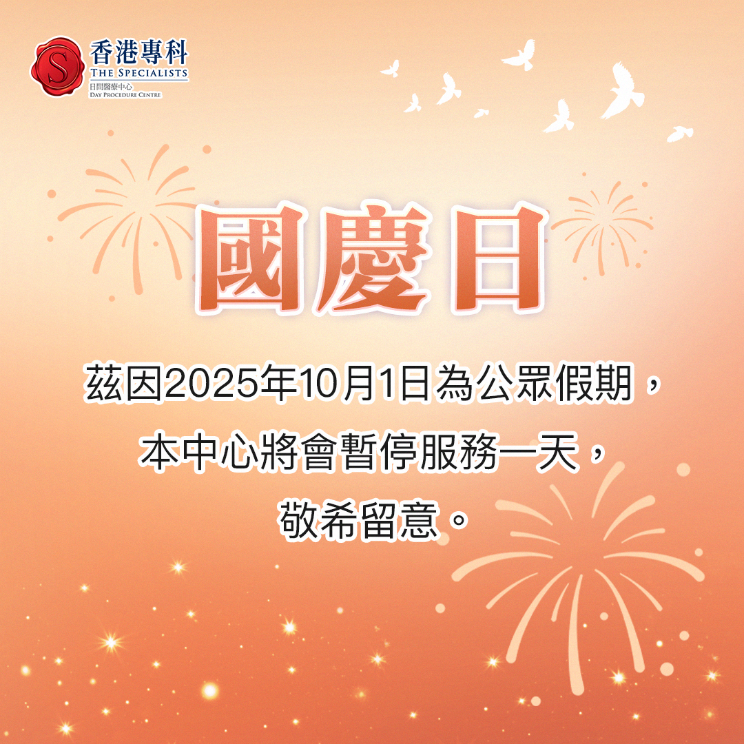 本中心於2025年10月1日(三) 國慶日休息,並於2025年10月2日(四)照常服務。