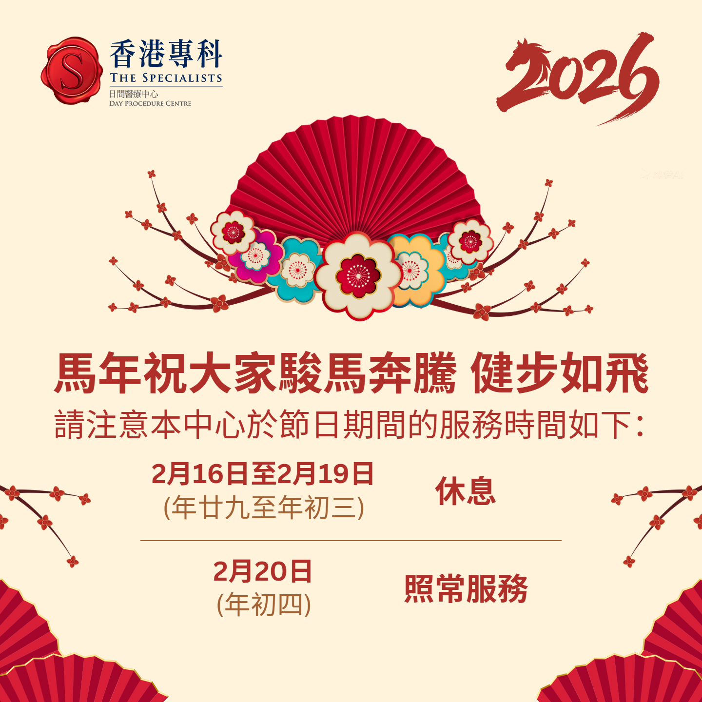 2026年農曆新年暫停服務通知